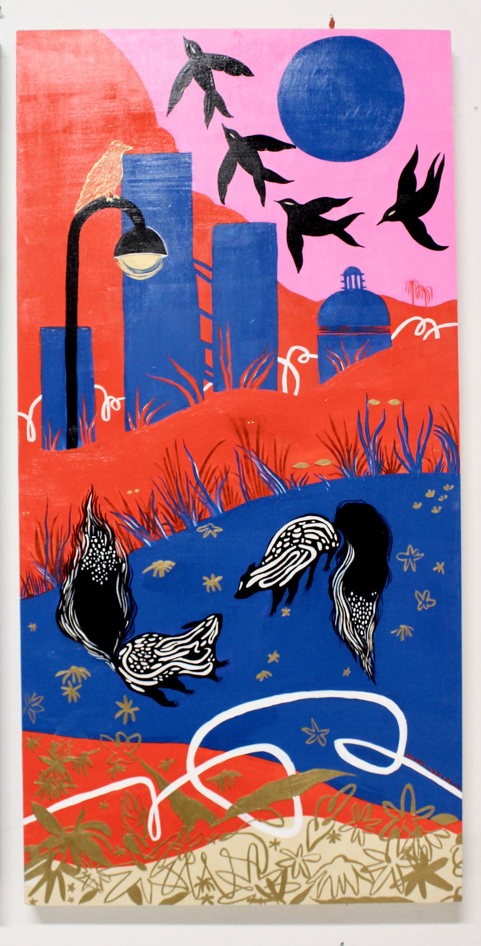City Animals also includes an installation of six wood panels by local artists exploring the exhibition's themes through diverse styles and techniques. The D.C. and Maryland-based artists—Death by Narwhals, Elizabeth Graeber, Golden Rabbit Silent Monkey, Shyama Kuver, Red Swan, and Kelly Towles—offer fresh perspectives on the interconnectedness of humans, animals, and nature.
